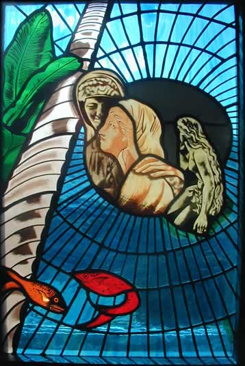 Traditional leaded panel (600mm x 800mm). Based on interior of Kibble Palace, Botanic Gardens, Glasgow. Utilises painting, staining & firing and sandblasting techniques.